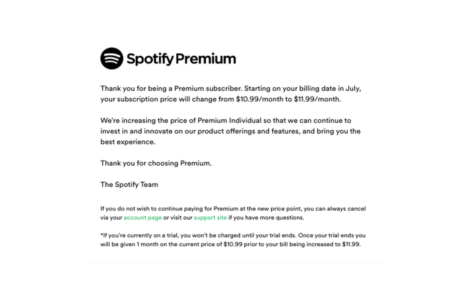 Subscribers who do not wish to continue with the new pricing can cancel via their account page or contact Spotify support for further assistance.