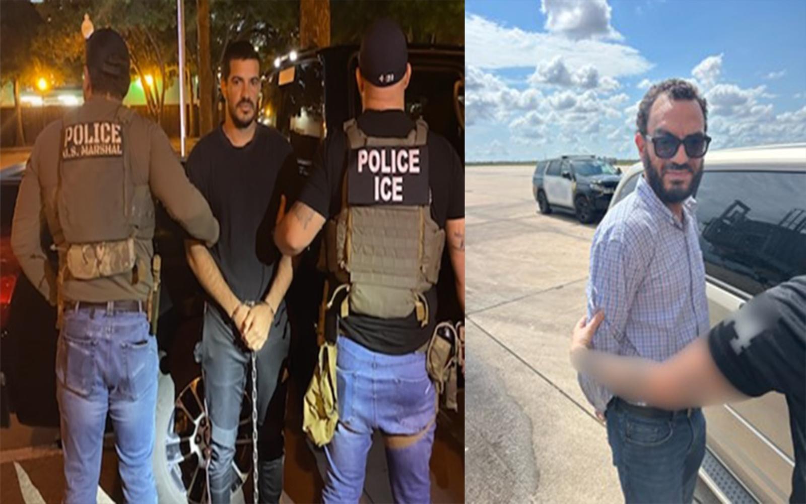 Left: ICE officers arrest a Venezuelan fugitive in Dallas. Right: An Egyptian national taken into custody in Corpus Christi.