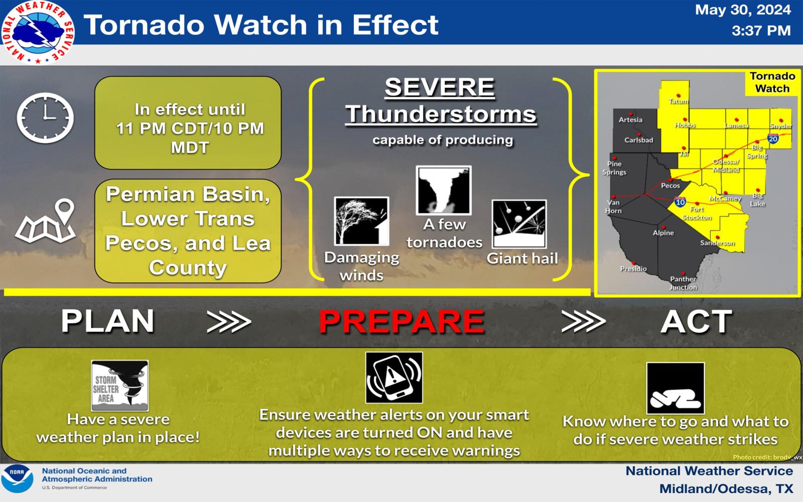 Those areas under the watch in Midland include the Permian Basin, Lower Trans Pecos, and Lea County.