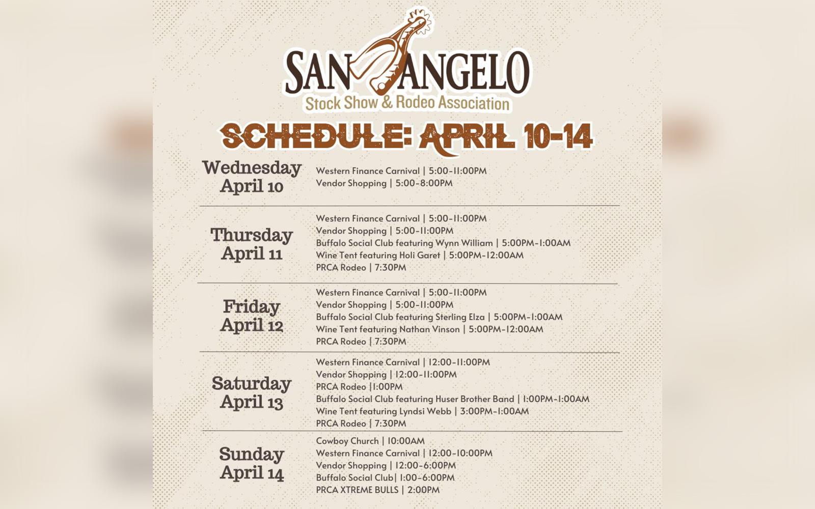 SAN ANGELO, TX — The San Angelo Stock Show and Rodeo Association has announced a packed schedule for the upcoming week, from April 10 through April 14.