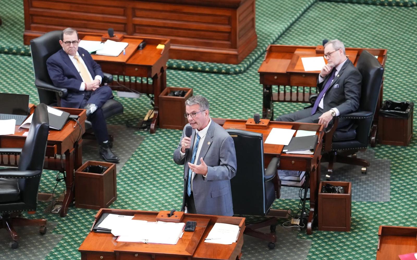 State Sen. Charles Perry, R-Lubbock, sponsor of Senate 5 which would ban THC-containing products, speaks on the Senate floor on July 30, 2025. Credit: Bob Daemmrich for The Texas Tribune